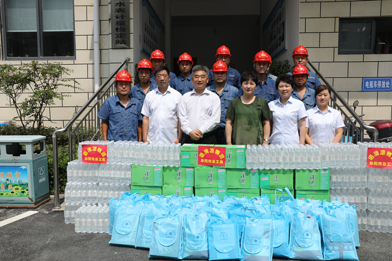 9月11日上午,市總工會黨組書記、副主席房繼紅帶隊到市供水總公司看望慰問堅守崗位的供水人,為他們送去關愛與清涼,總公司黨委副書記、副總經理閆獻華,紀委書記、工會主席洪德義陪同慰問。