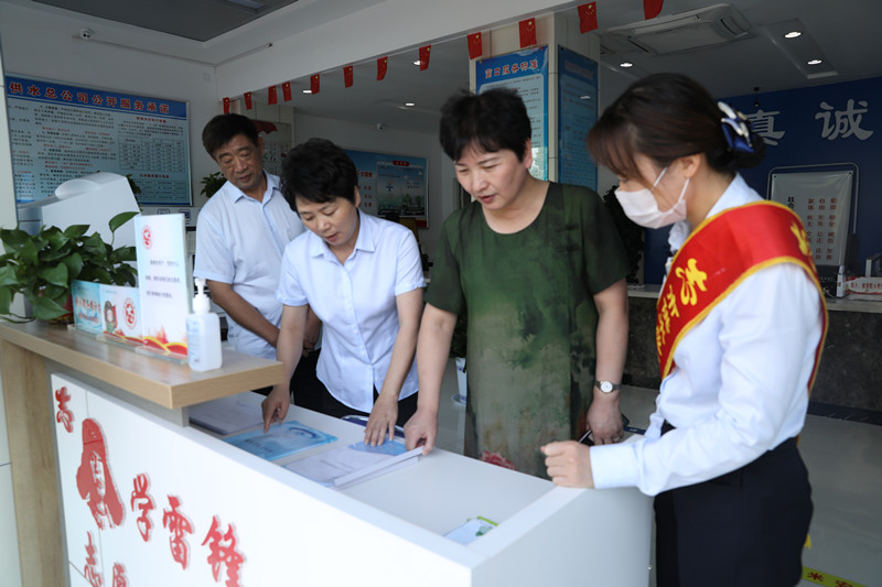 隨后,房繼紅一行還來到怡和營業網點,慰問前臺工作人員,查看了怡和營業網點文明創建工作的開展情況,對網點的文明創建工作進行了充分的肯定,同時也指出要把創建工作融入到平常的工作當中去,做到常態創建、長效創建。