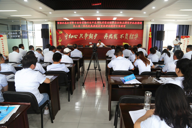 為進一步深入學習領會習近平總書記考察安徽重要講話精神和在合肥主持召開扎實推進長三角一體化發展座談會重要講話精神,9月28日,市供水總公司特邀阜陽市直工委書記、省委理論宣講團成員、安徽大學、阜陽師范學院兼職教授李濤就深入學習貫徹習近平總書記考察安徽和在合肥主持召開扎實推進長三角一體化發展座談會重要講話精神作專題輔導報告。