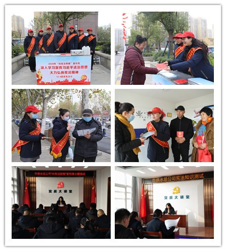 今年12月4日是第七個(gè)國(guó)家憲法日,也是第三個(gè)“憲法宣傳周”。為深入學(xué)習(xí)貫徹黨的十九大和十九屆二中、三中、四中、五中全會(huì)精神,學(xué)習(xí)宣傳中央全面依法治國(guó)工作會(huì)議精神,弘揚(yáng)憲法精神,維護(hù)憲法權(quán)威,推動(dòng)憲法全面實(shí)施,按照市委宣傳部、市司法局、市法宣辦統(tǒng)一部署,市供水總公司陸續(xù)開展了2020年“向憲法致敬”宣傳周主題活動(dòng)。