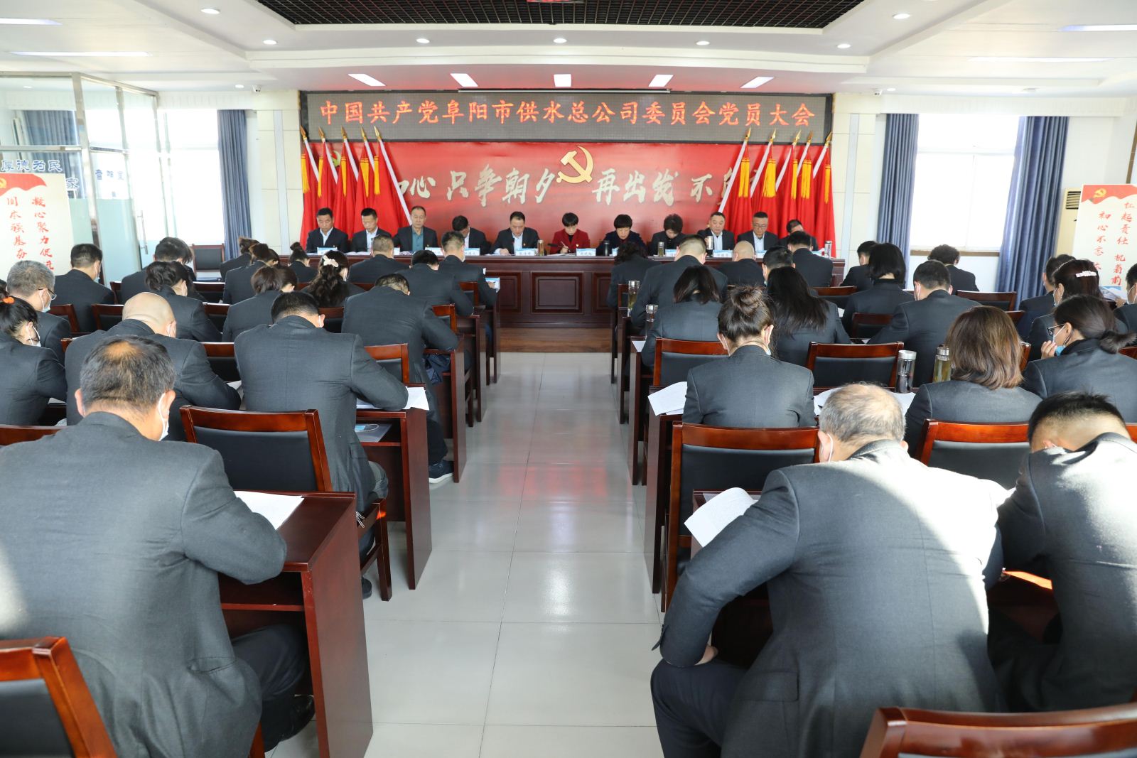 12月31日上午,總公司黨員齊聚一堂,在莊嚴(yán)的《中華人民共和國國歌》中,中國共產(chǎn)黨供水總公司黨員大會在五樓會議室隆重召開。市直工委副書記周曉梅、市城鄉(xiāng)建設(shè)局二級調(diào)研員丁麗群,總公司黨委班子成員和全體黨員參加會議。