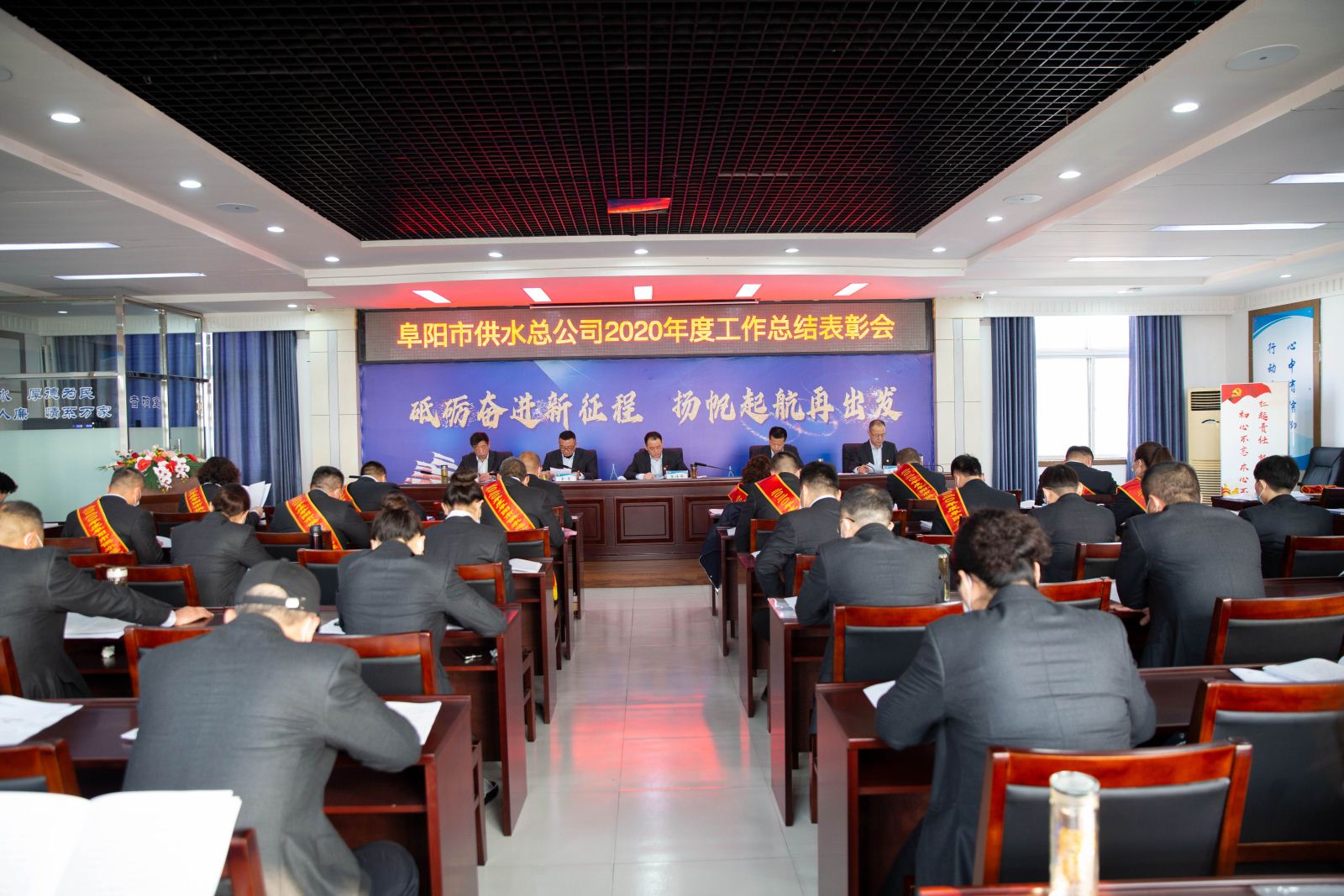 會議在嘹亮的國歌聲中開始,總公司黨委書記、總經(jīng)理張傳峰同志作《2020年度供水工作報告》,報告指出2020年度供水總公司積極圍繞全市經(jīng)濟發(fā)展大局,扎實落實市委市政府關(guān)于“產(chǎn)業(yè)項目建設(shè)年”,“優(yōu)良作風(fēng)建設(shè)年”的要求,以保障阜城安全供水為中心,克難攻堅,創(chuàng)新實干,不斷夯實安全生產(chǎn)管理基礎(chǔ),提升優(yōu)質(zhì)服務(wù)水平,加快供水基礎(chǔ)設(shè)施建設(shè)步伐,圍繞年初制定的各項責(zé)任目標(biāo),狠抓落實,嚴(yán)格管理,各項工作穩(wěn)步推進(jìn)。