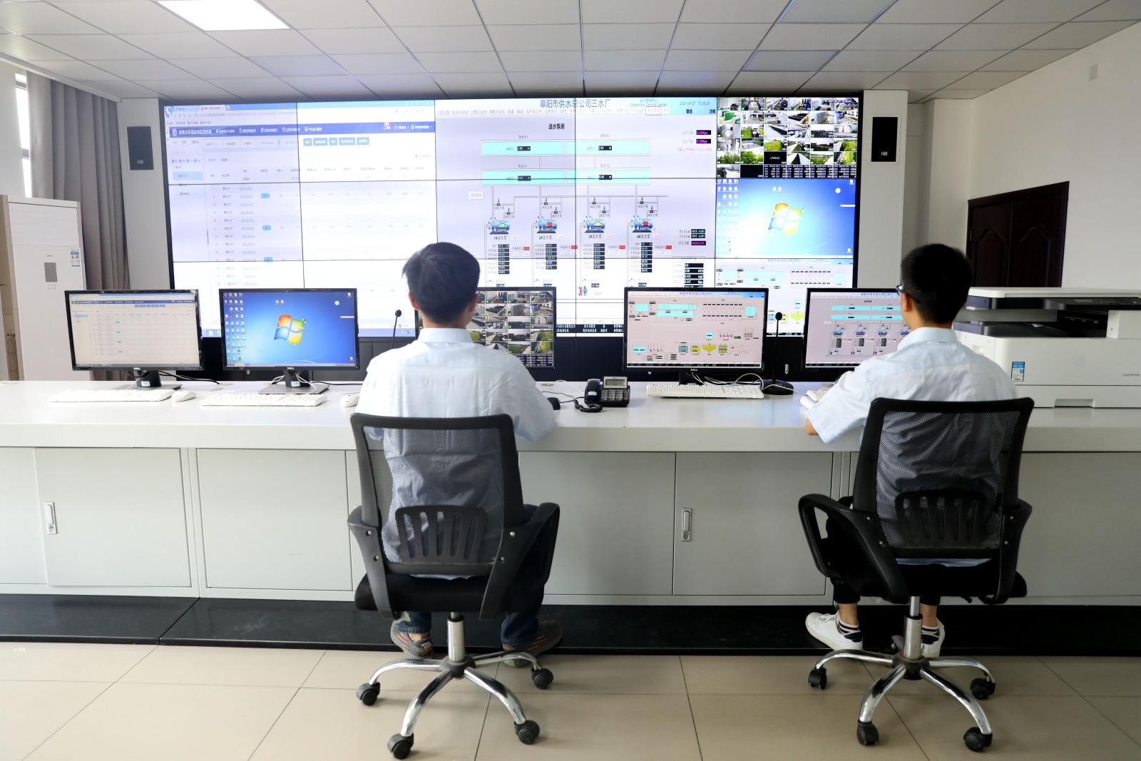 調度系統平臺前面,調度員實時監控供水管網安全運行狀態,嚴密監測原水水質變化,加強出廠水、管網水檢測頻次,確保阜城居民用水安全。